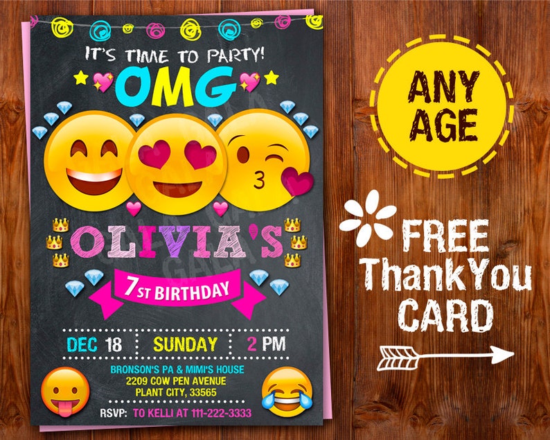 Emoji Einladung Geburtstagsfeier Einladen Eigene Druckbare Etsy
